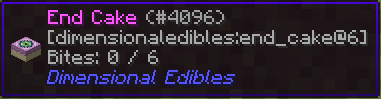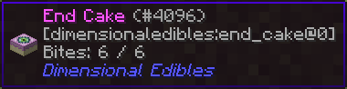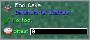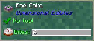 • End Cake: Вдохновлённый End Cake из Dimensional Cake, они функционируют практически одинаково, за исключением того, что в этом моде используется собственная текстура.