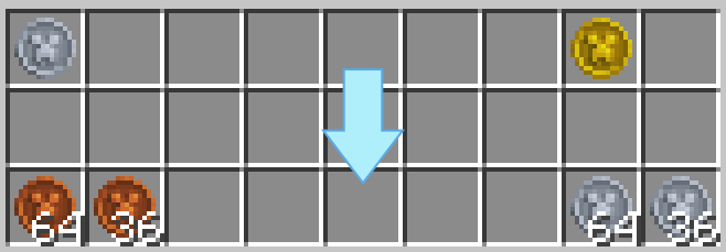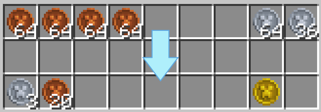 Монеты можно обменивать с помощью команд /coins stack и /coins unstack.
