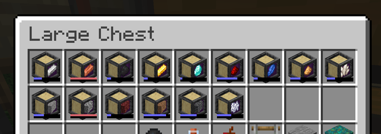 Данный мод добавляет сундуки, созданные из Stone (камня), Cobblestone (булыжника), Andesite (андезита), Diorite (диорита) и Granite (гранита).