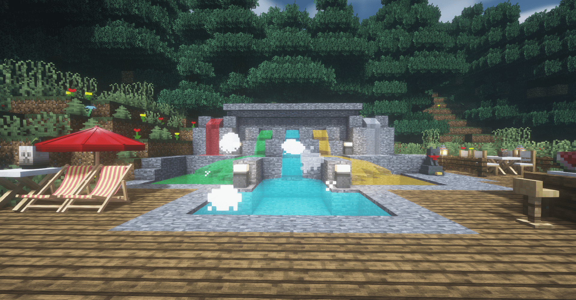 Fluidlogged позволяет пользовательским жидкостным блокам иметь эффект "заполненности водой" с такими блоками, как ступени, плиты и другие, что позволяет жидкостям hotbath естественно интегрироваться в различные конструкции.
