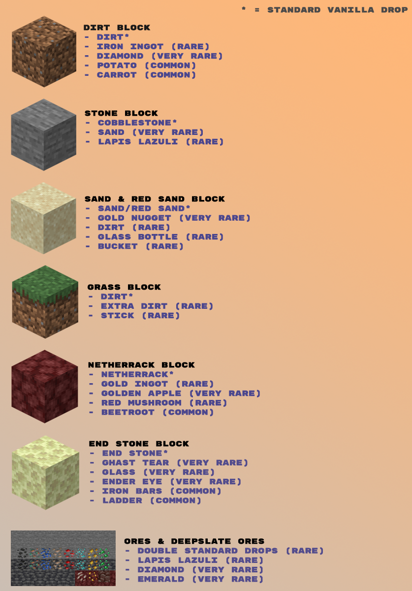 Ванильный майнинг дает только 1 предмет при добыче блоков. С DarkMining у вас теперь есть шанс получить даже больше предметов! Добывайте некоторые руды, чтобы получить алмазы и изумруды или отправляйтесь на поиски сокровищ в песке.