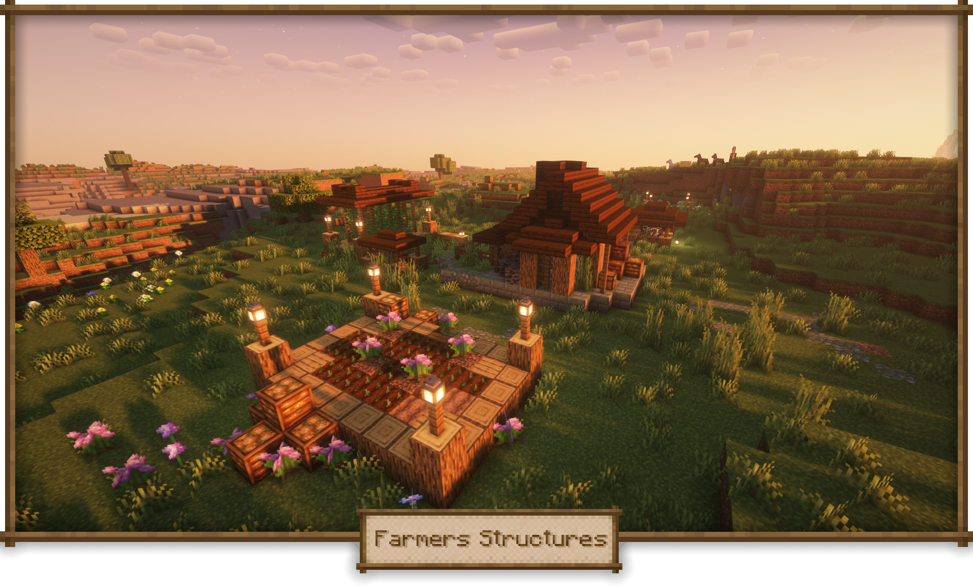■ Farmers Structures — это дополнение для Farmer's Delight, которое добавляет множество новых структур, обучающих игрока использованию механик этого мода и просто красивых!