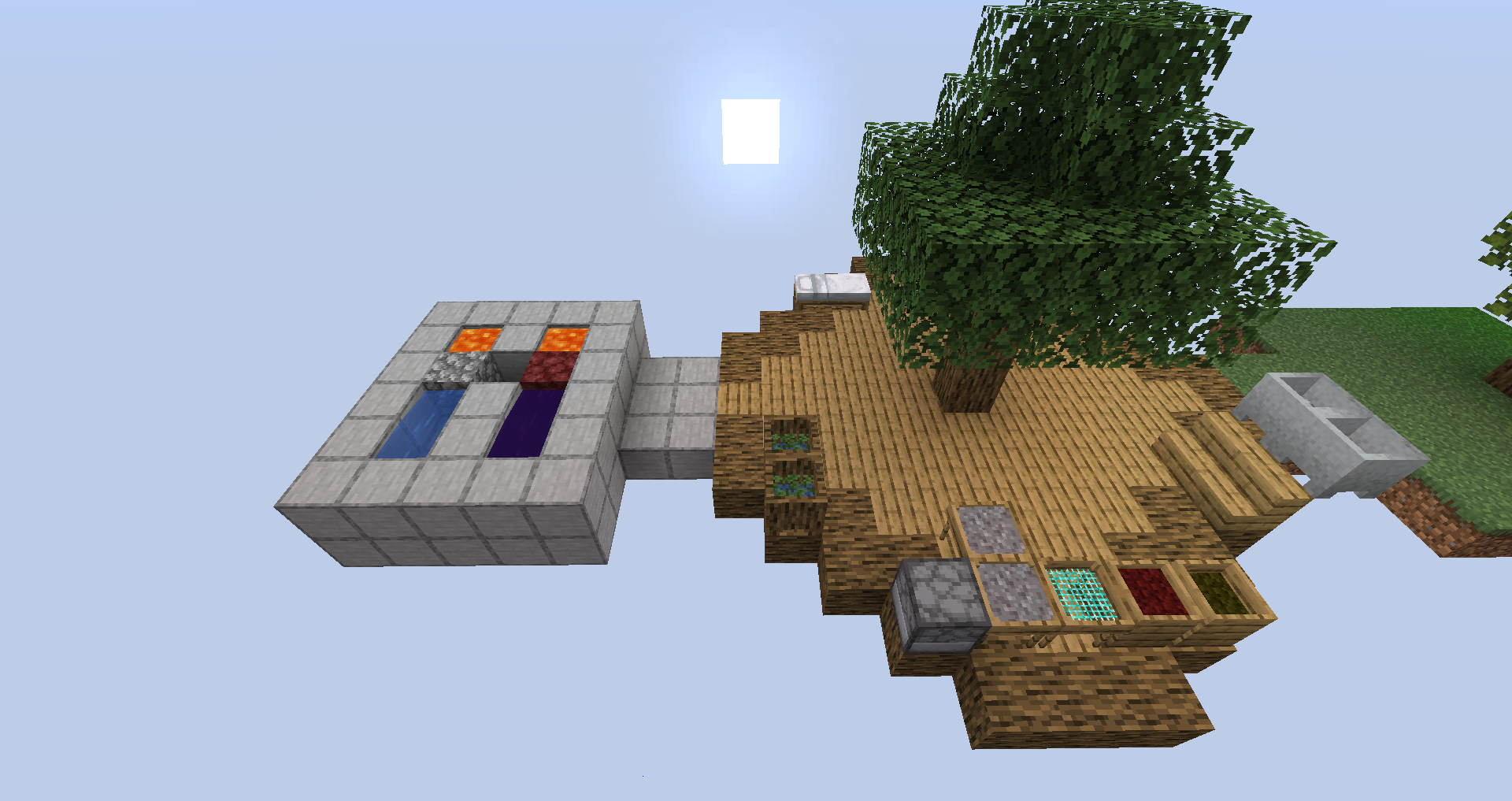 Активация блока переносит игрока внутрь измерения. На стенах этого измерения расположены выходные порталы, активация которых возвращает игрока в основной мир.
